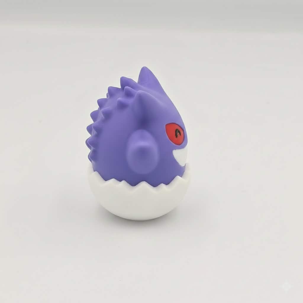 Bring spooky fun to your Easter celebrations with this 3D Printed Gengar Easter Egg! Featuring Gengar’s signature mischievous grin and bold red eyes emerging from a cracked white egg shell, this unique collectible is the perfect combination of ghostly charm and holiday spirit.